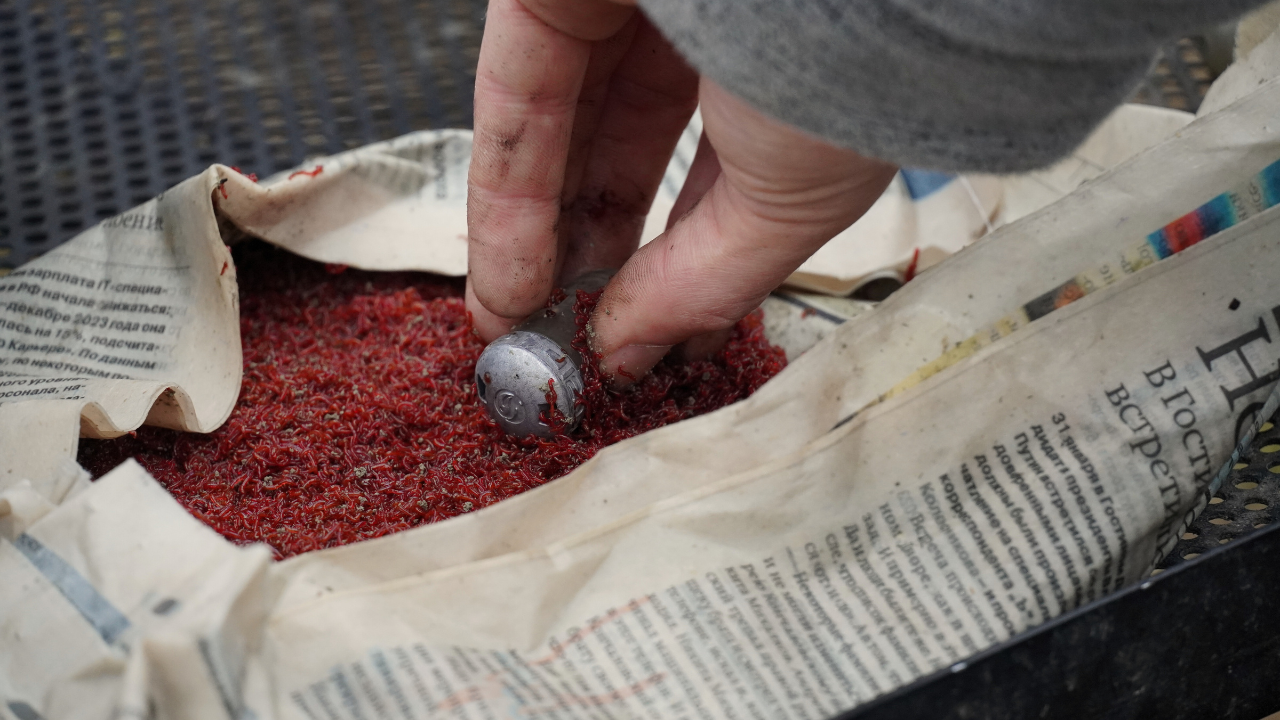 Jeżeli do ziemi zamierzam dodać siekaną dendrobenę, całkowicie rezygnuję z dolewania wody, ponieważ mieszanka nawilża się wilgocią zawartą w pociętych robakach. Podobnie wygląda to w przypadku casterów wyjętych z wody. W takim układzie proces dowilżania najlepiej przeprowadzić dopiero po dodaniu robaków do ziemi.
