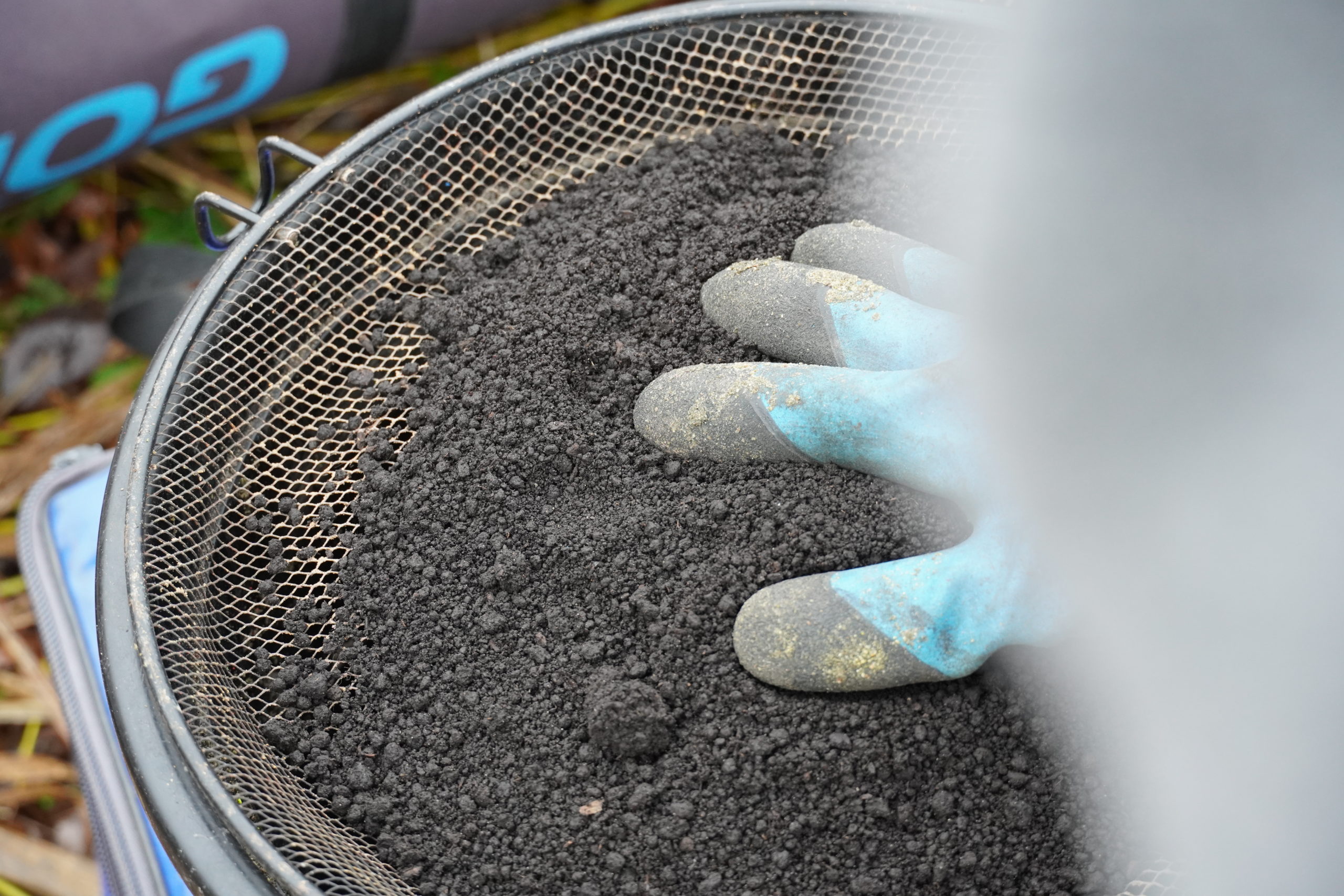 W pierwszej kolejności przecieram ziemię przez sito o oczkach 4 mm. Jest to etap, który przy przygotowaniu zanęty często pomijam, jednak gliny stanowią nośniki o odmiennej, trudniejszej do równomiernego nawilżenia strukturze. W efekcie niemal każda z nich zawiera mniejsze lub większe grudki. Lubię je rozdrobnić, bo daje mi to większą kontrolę nad pracą całej mieszanki i lepiej wygląda.